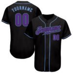 Custom Black Purple-Light Blue Authentic Baseball Jersey