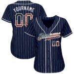 Be the first to review “Custom Navy White Pinstripe Vintage USA Flag-White Authentic Baseball Jersey”