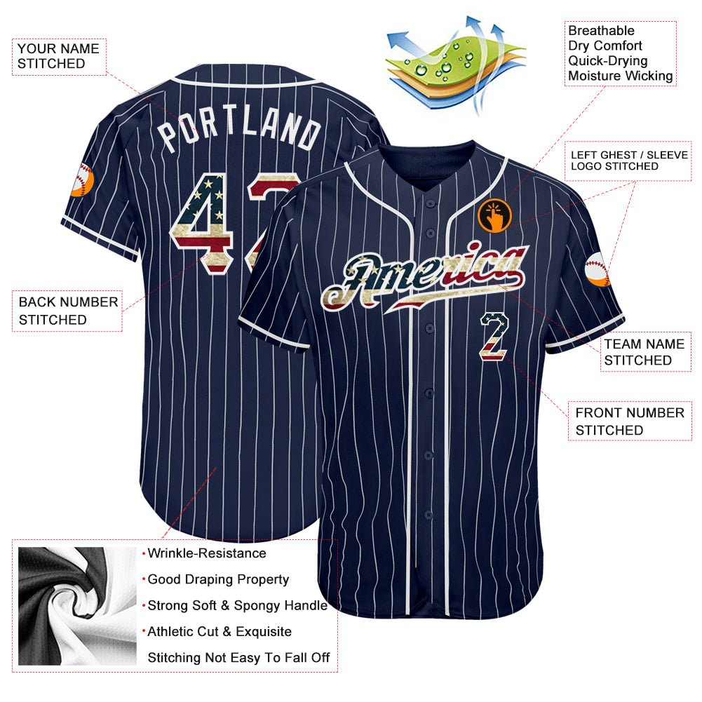 Custom Navy White Pinstripe Vintage USA Flag-White Authentic Baseball Jersey